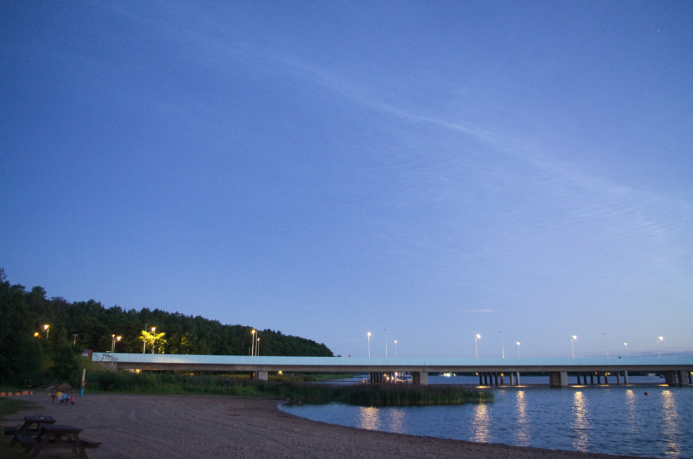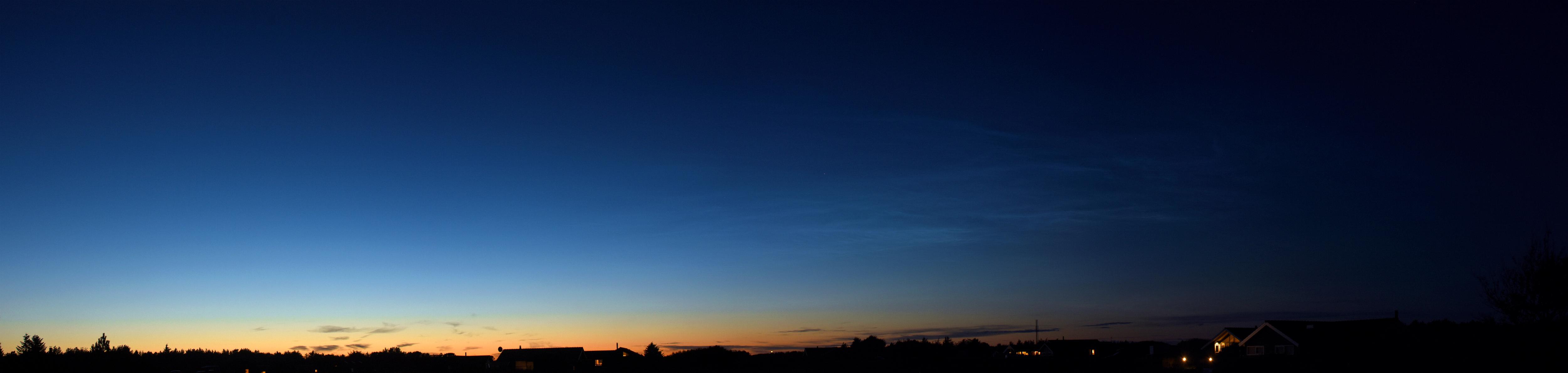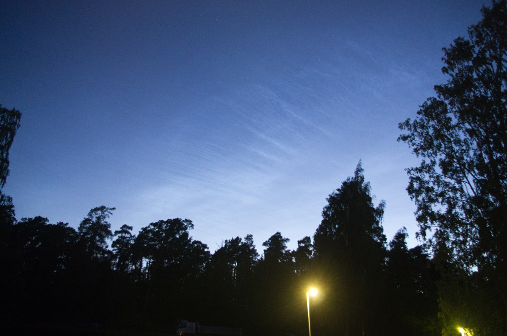 Ich war zu der Zeit in Helsinki auf dem Zeltplatz Rastila (60°12' N, 25°07' E). In der langen hellen Dämmerung war mir nicht ganz klar, ob ich dezente NLC bis zum Zenit hin sehe, oder ob das Cirrus war, der aus irgendeinem Grund hell erscheint. Später wurde es dann eindeutig.