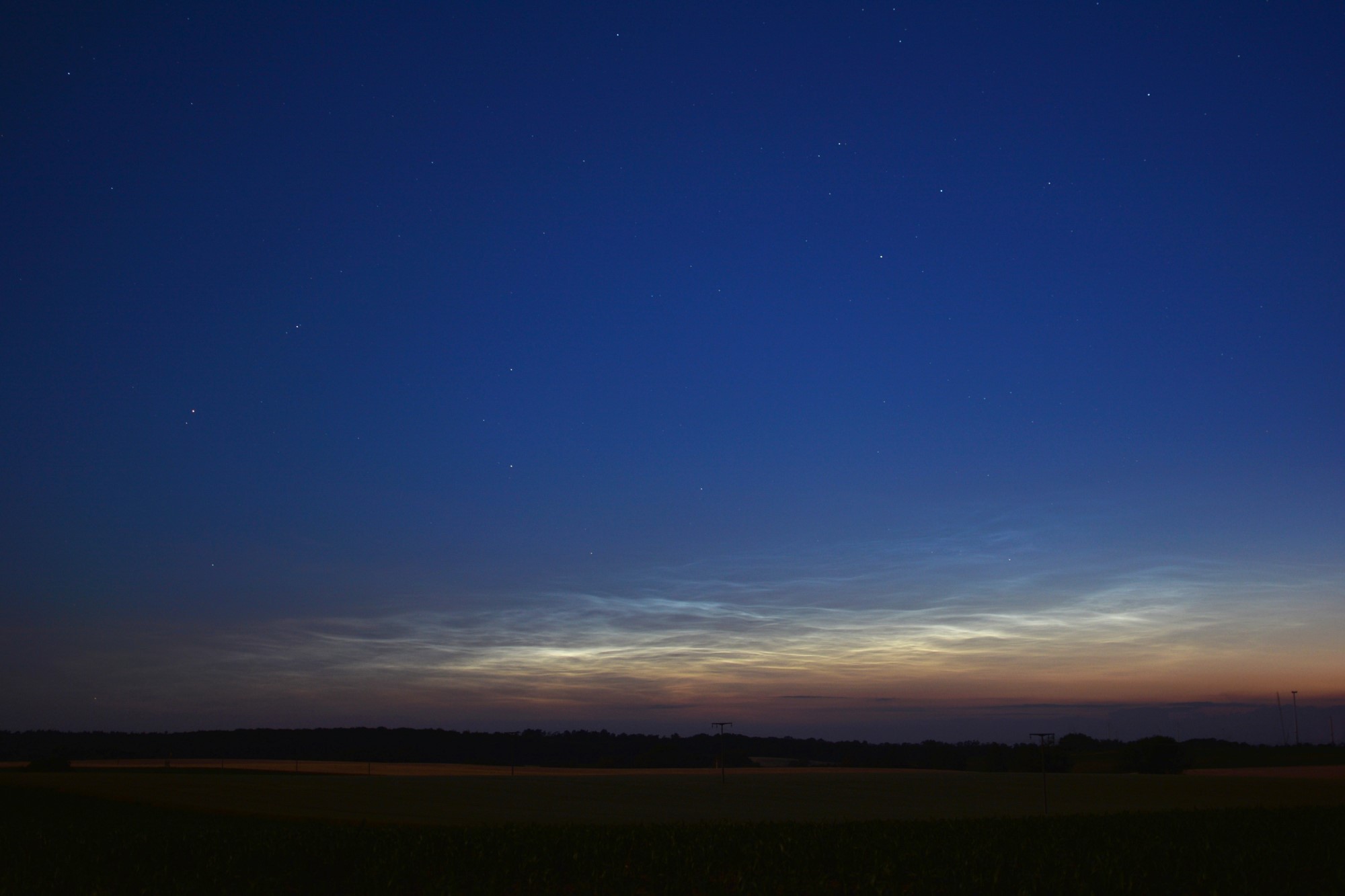 Da die NLCs dort zu Beginn der Dämmerung sehr hoch stehen, wäre Potential für mehr gewesen. Aber vielleicht tauchen ja später noch Aufnahmen aus südlicheren Gefilden auf...