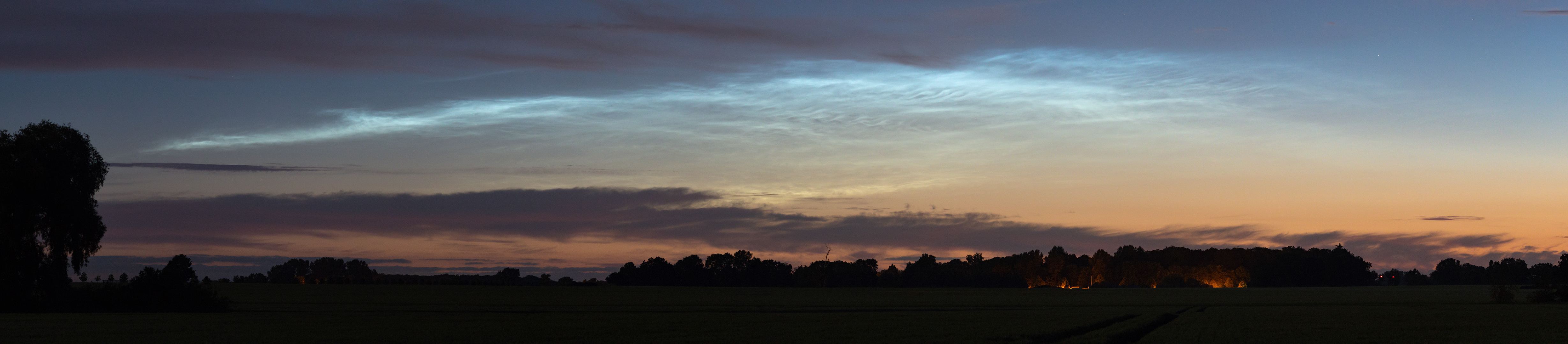 Am Höltigbaum entstand um 23:25 MESZ das folgende Panorama (58mm). Gleich darauf verschwanden die NLC hinter der von Norden hereinziehenden Wolkendecke...