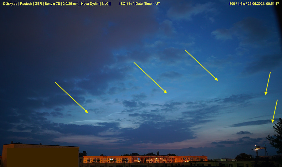 Die NLCs waren anfangs sehr hell gewesen (Stufe 4) und verliefen etwa von NNW nach NNO.