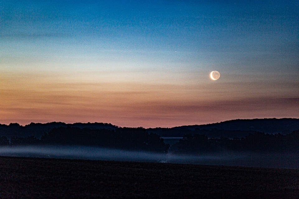 ich habe gegen 4 Uhr (MESZ) nochmal routinemäßig aus dem Fenster geschaut, in einen blitzblanken Himmel mit abnehmendem Mond.