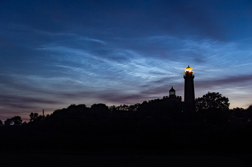 Die NLCs steigerten sich noch auf Helligkeit 2, bevor sie anfingen wieder leicht zu verblassen. Beim Durchspielen der Aufnahmen am Kameradisplay war auffällig, dass die NLC-Strukturen anscheinend gen Süden ziehen und für mich als Beobachter somit augenscheinlich aufstiegen. Das alles allerdings recht minimalistisch am NNO-Horizont. Erst einmal ging es nun zum Leuchtturm von Kap Arkona - meine dortige “ISS-Mission” habe ich erfolgreich absolviert