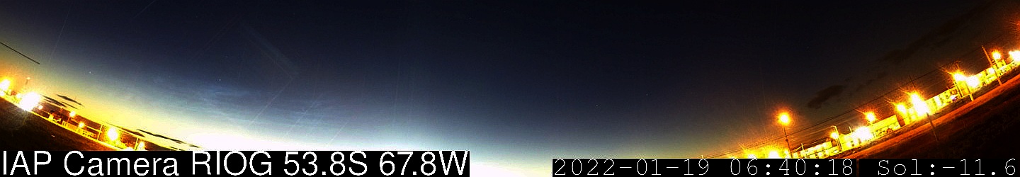 Der Stream aus Ushuaia zeigte ab ca. 03:25 LT (06:25 UT) NLCs, die in der Folge hinter abziehendem troposphärischen Gewölk immer deutlicher in Erscheinung treten.