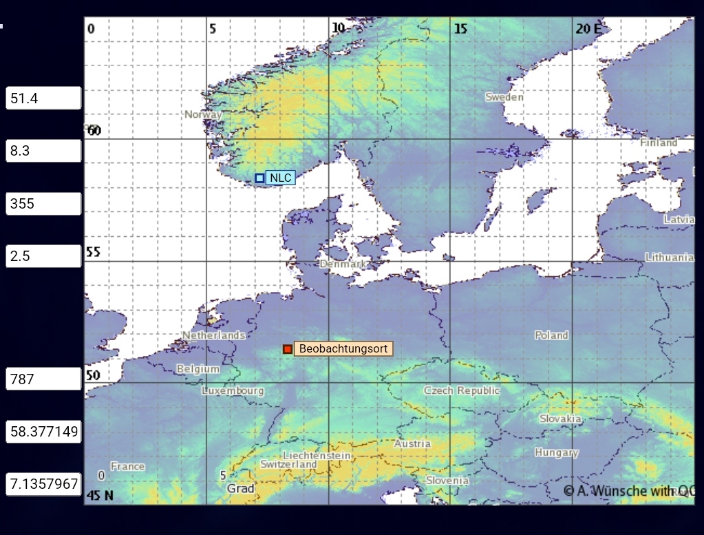 Die NLCs standen von Geseke aus zenithoch in Südnorwegen... Danke an Alexander Wünsche für das Tool...!
