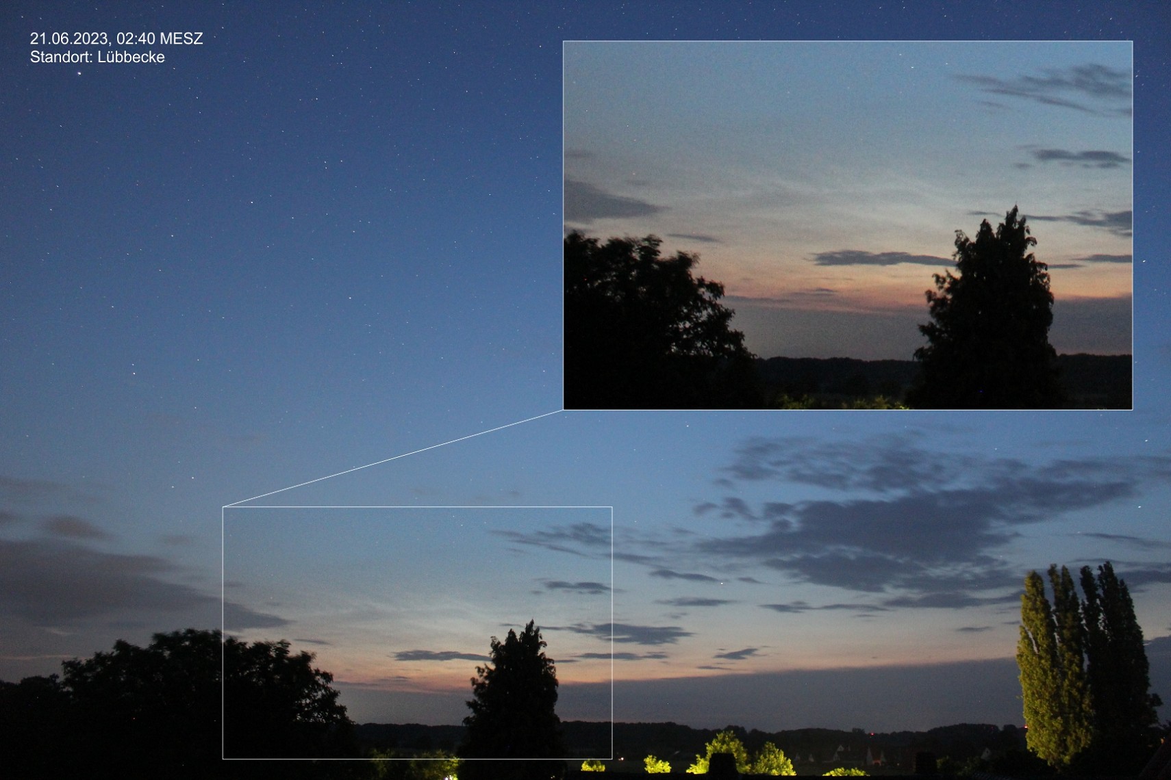 am Morgen und nach Durchzug von Gewittern klarte der Himmel zumindest teilweise auf, so dass Wolkenlücken immer mal wieder den Blick auf die Leuchtenden Nachtwolken freigegeben haben.