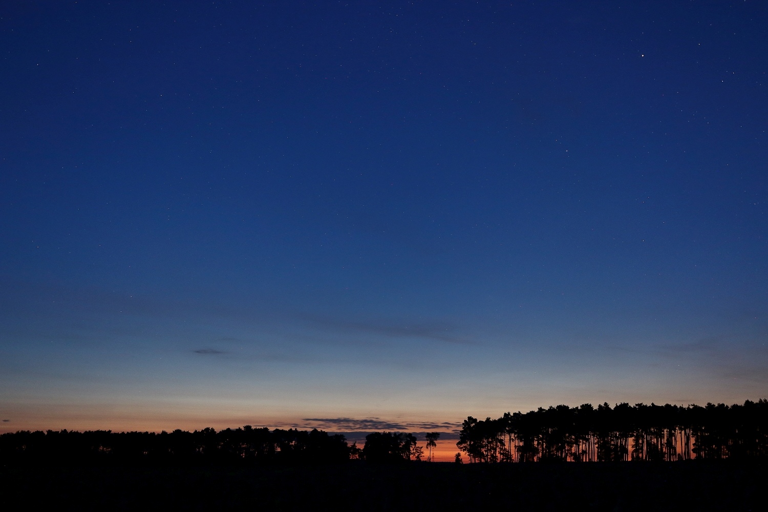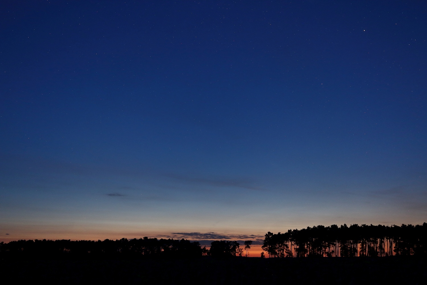 Aktuell sehr schwache NLCs genau in Richtung Norden, sehr tief am Horizont (<5° Höhe).