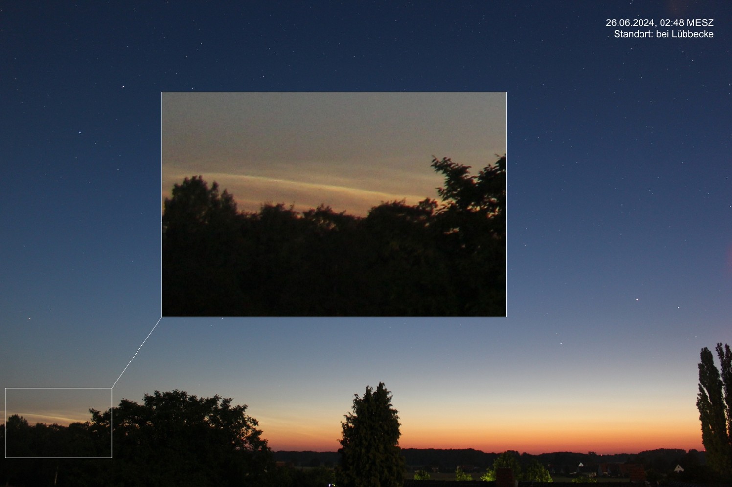 wie es die wolkenfreie Nacht so möglich gemacht hat, waren die NLCs auch auf ca. 52.3°N bei Lübbecke nachzuweisen: