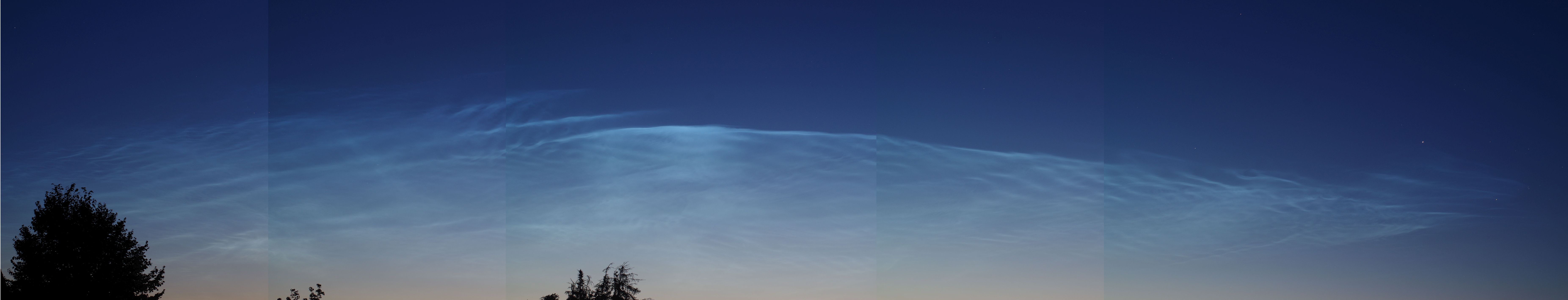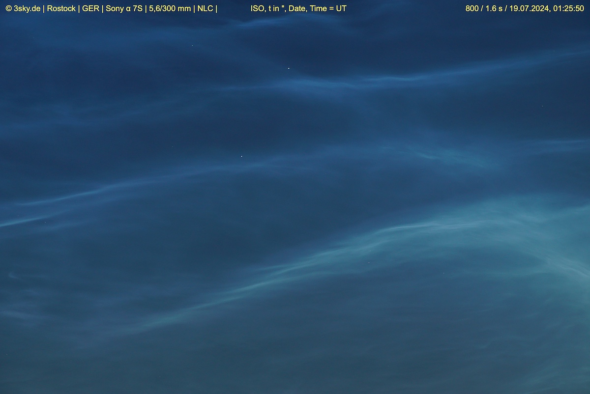 Moin zusammen, selber Ort und gleiche Zeit wie gestern: tolle NLCs bei Kirchlengern (ca. 52.2N), derzeit bis 10 Grad Höhe und mit Helligkeit „4“.