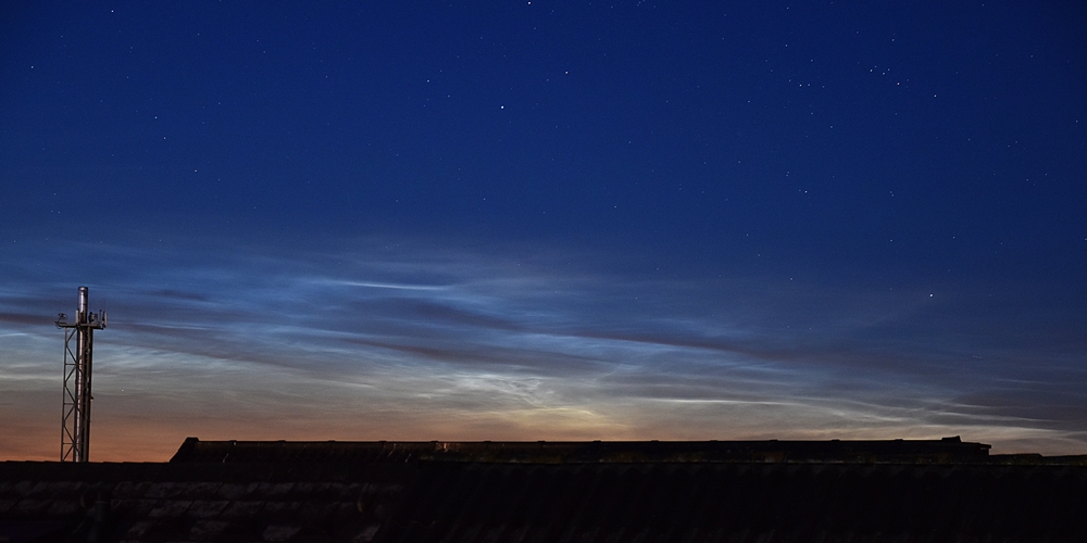Die leuchtende Nachtwolke setzte sich nach Westen weiter fort und konnte wegen Gebäudebegrenzung nicht abgelichtet werden (Bildrand links ist Norden).