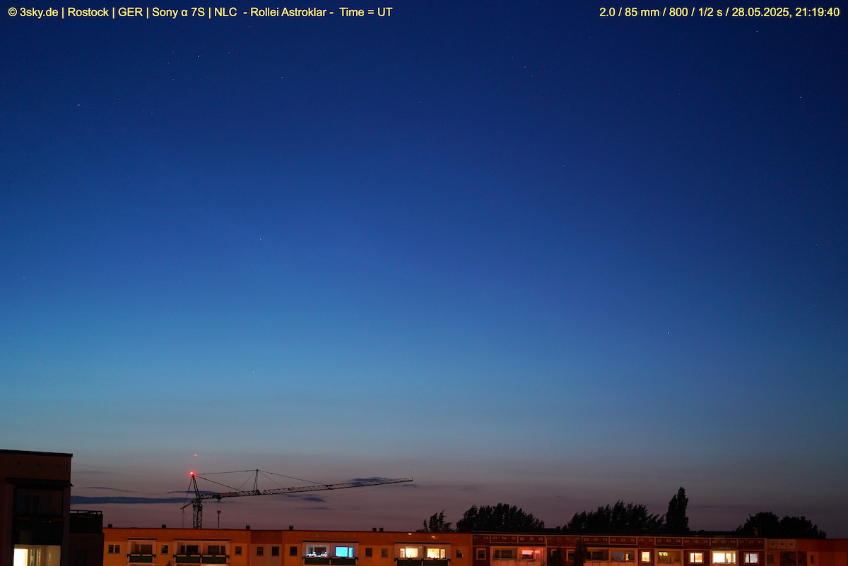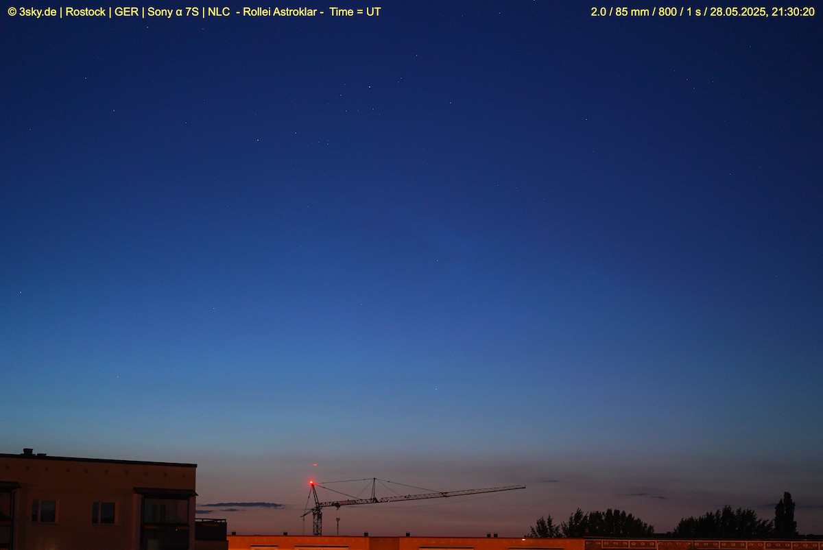 OlafS hat geschrieben: 28. Mai 2025, 21:26 Ja, 2120 UT gesichert von Rostock aus. Gut 10 Grad in 350. Anzeichen wohl bereits ca 2050 UT tiefer in N/NNO. Fotografisch . ...