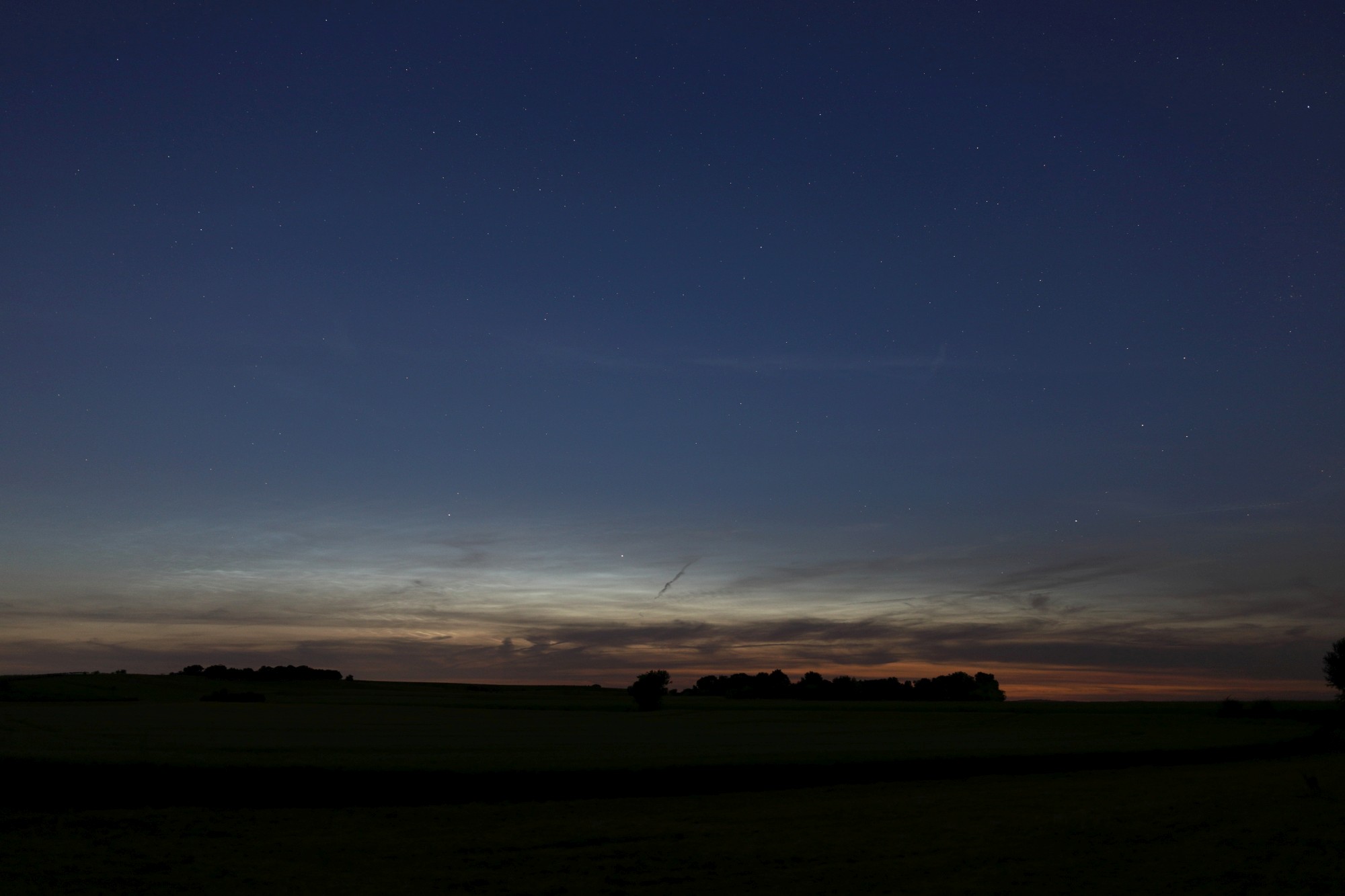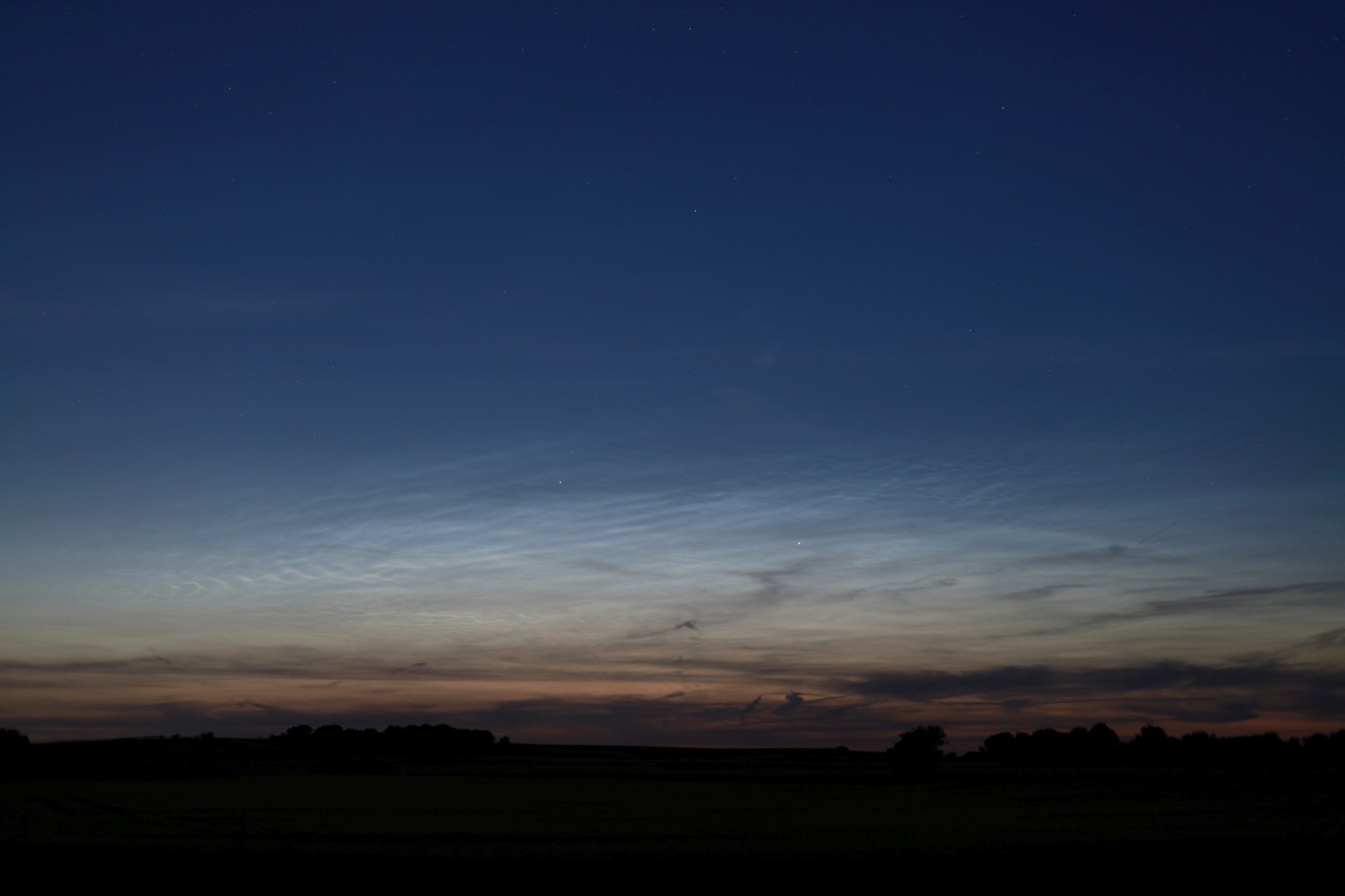 Vom Rendezvousberg am Nordrand von Wien waren von 22:20 bis 22:45 MESZ mit freiem Auge NLCs zu sehen, deutlich mit Helligkeit 3.