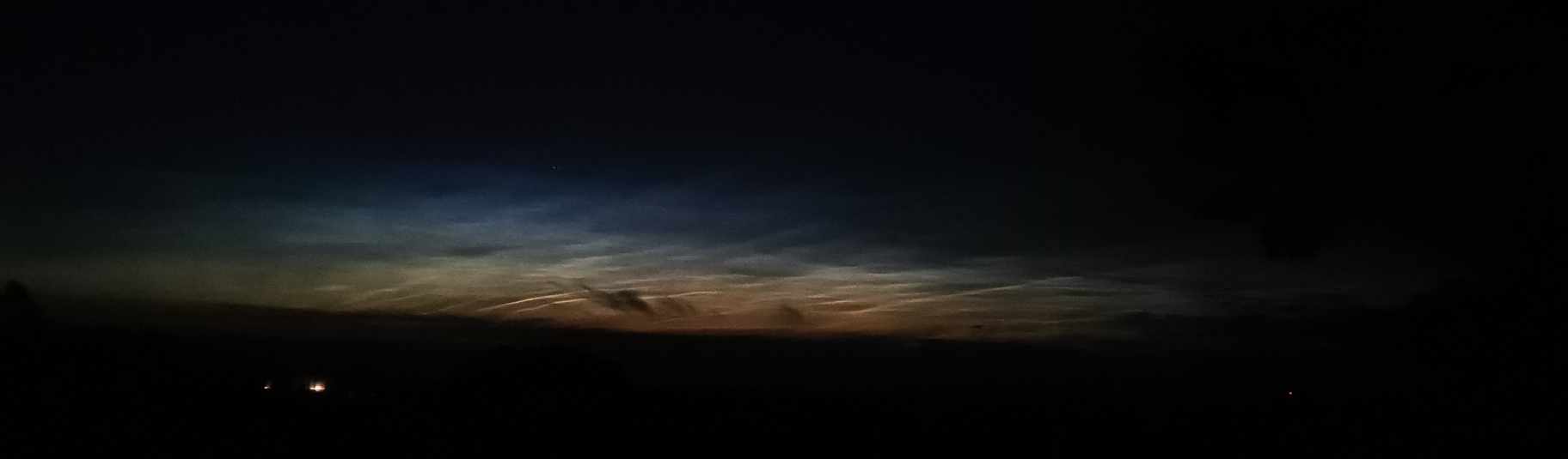 gestern zwischen ca. 23:30 und 00.00 Uhr MESZ haben wir hier auch NLC`s beobachten können. Aufnahme von ca. 23:35 Uhr mit Handy und verkleinert für Forum.