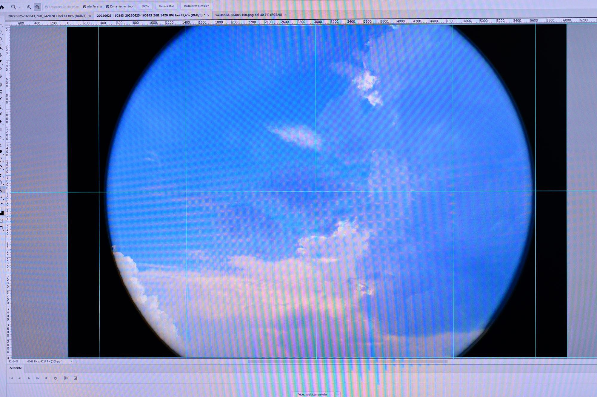 Zurück im Fotoladen, das Objektiv an eine andere Nikon Z6II gesteckt und dieselben Einstellungen gewählt. Durch den Sucher sah es jetzt bei meiner und der zweiten Z6II gleich verschoben aus. Zuhause am Monitor konnte ich das bestätigen.