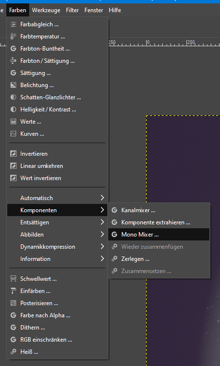 Die Erklärungen in der AKM-Homepage passen nicht mehr 1:1 zu den neuen Menüs in Gimp.