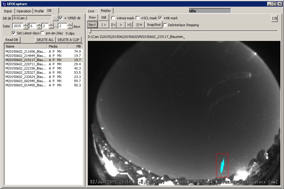 Ich konnte die Feuerkugel mit der Kamera festhalten.Uhrzeit 23:51 MESZ.Blickrichtung SW etwa 40 Grad Höhe.Helligkeit ca. -5.