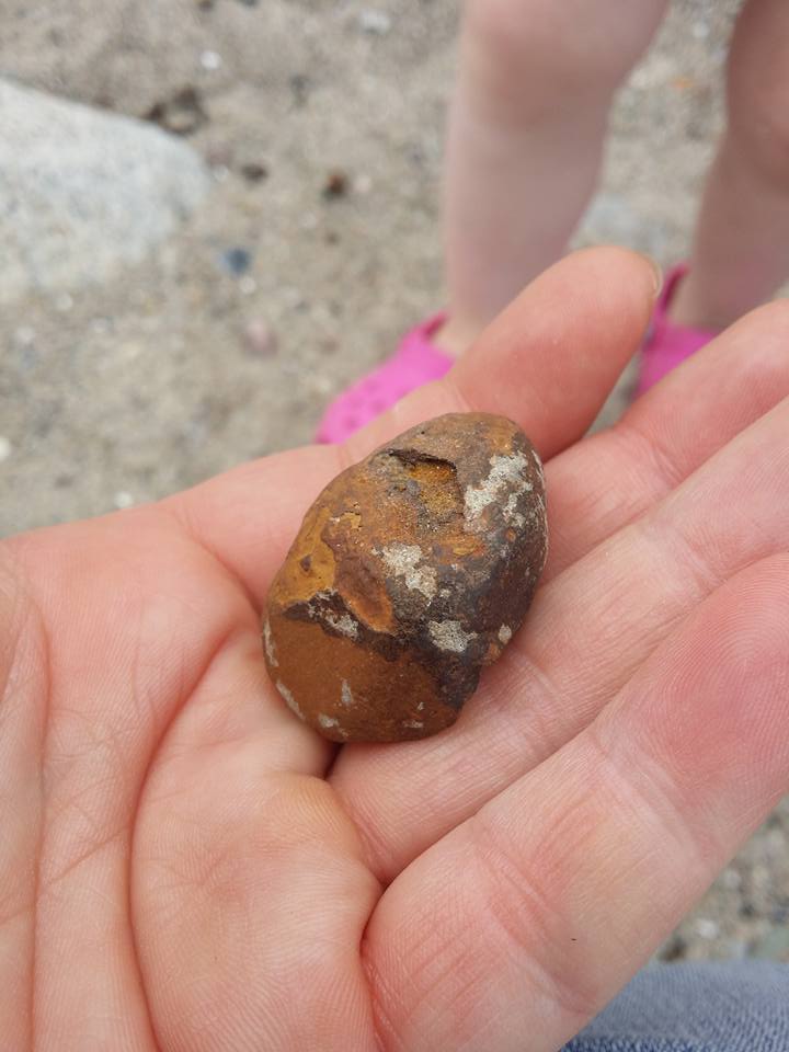 ich kann bestätigen, dass es sich hier um eine Limonitknolle handelt. Ein natürliches in Norddeutschland häufig vorkommendes Eisenerz.