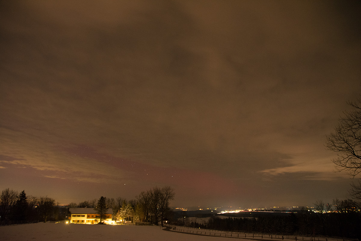 ich war gerade dabei, das Polarlicht zu fotografieren, als hinter meinem Rücken ein Bolide mit unglaublicher Helligkeit seine Bahn gezogen hat! Vor mir auf der schneebedeckten Wiese leuchtete es hell auf, ich dachte zunächst an ein Auto, das sich von hinten nähert. Ich drehte mich um und sah diesen Boliden auch für etwa 2 Sekunden, bevor er hinter Bäumen und Horizont verschwand. Eventuell leicht grünlich von der Farbe her. Und nun zur Helligkeit: Aus dem Bauch heraus würde ich etwa auf Vollmondhelligkeit oder + tippen!
