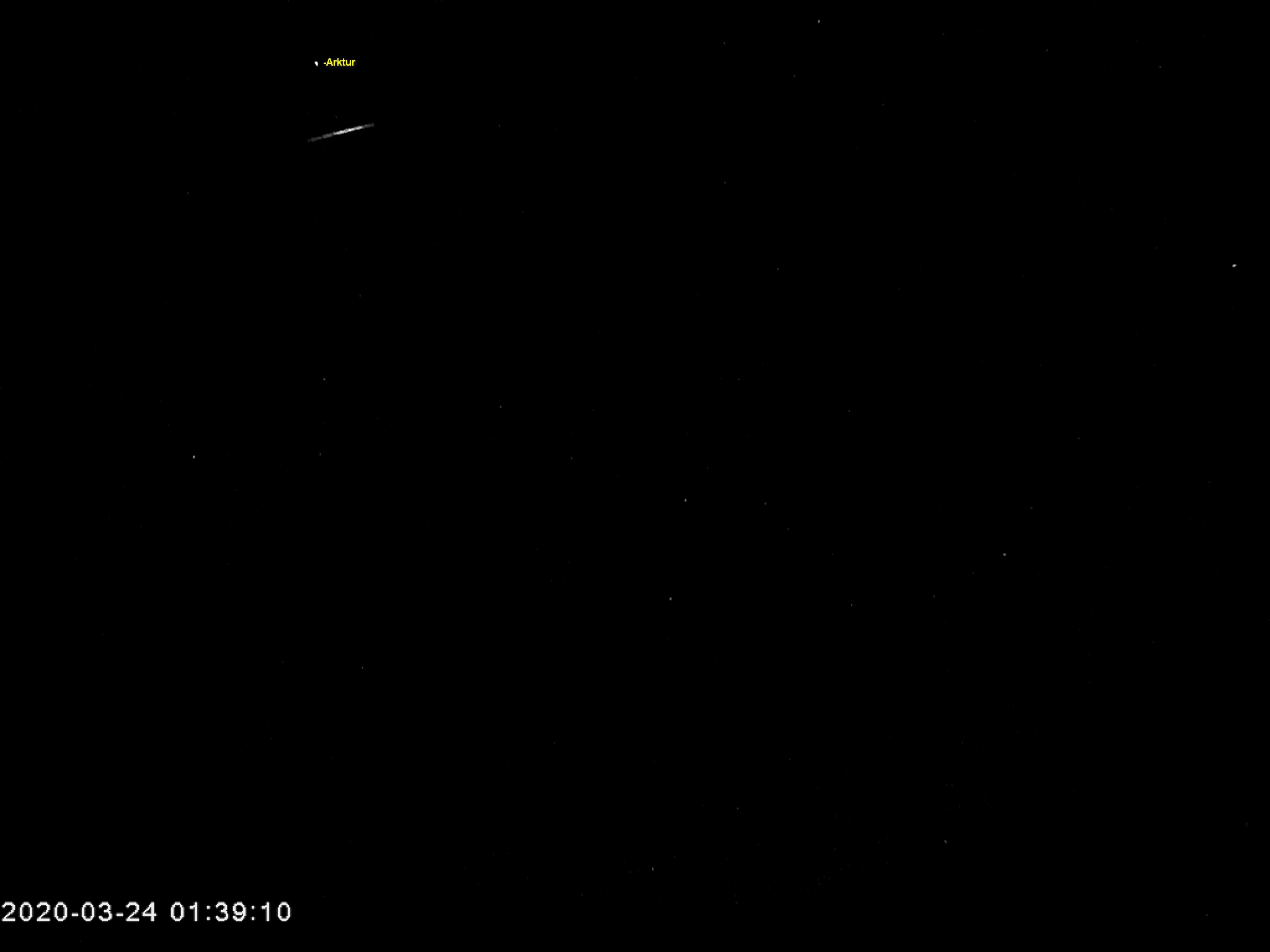 2020-03-24 um 01:39:10MEZ von rechts nach links unter "Arktur" vorbei. Dauer ~1s.