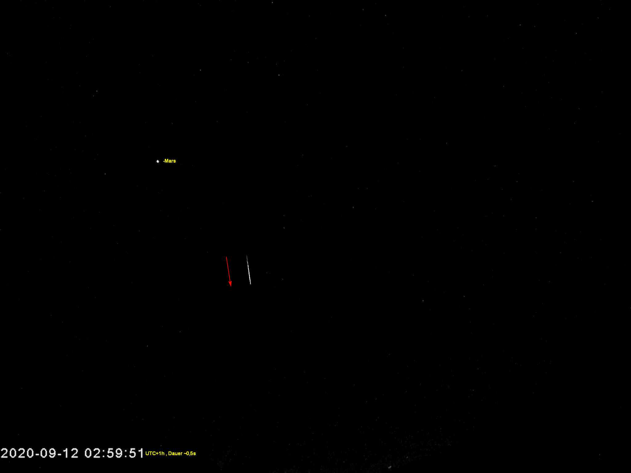 Der einzelne dürfte dem um 01:59:54 UTC von Wiesbaden aus entsprechen. Das Bild entspricht 10sec.