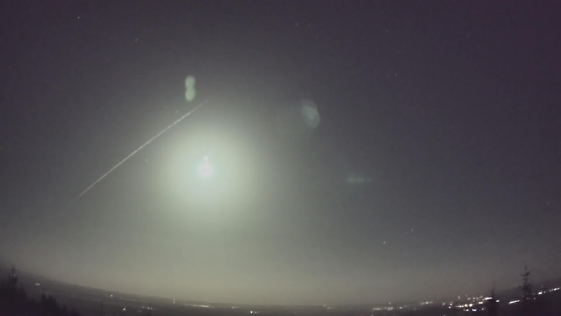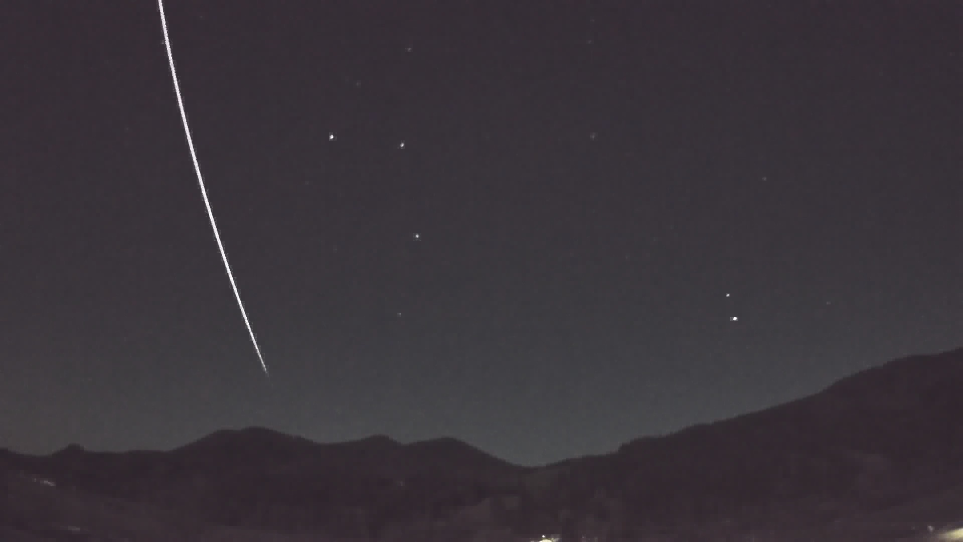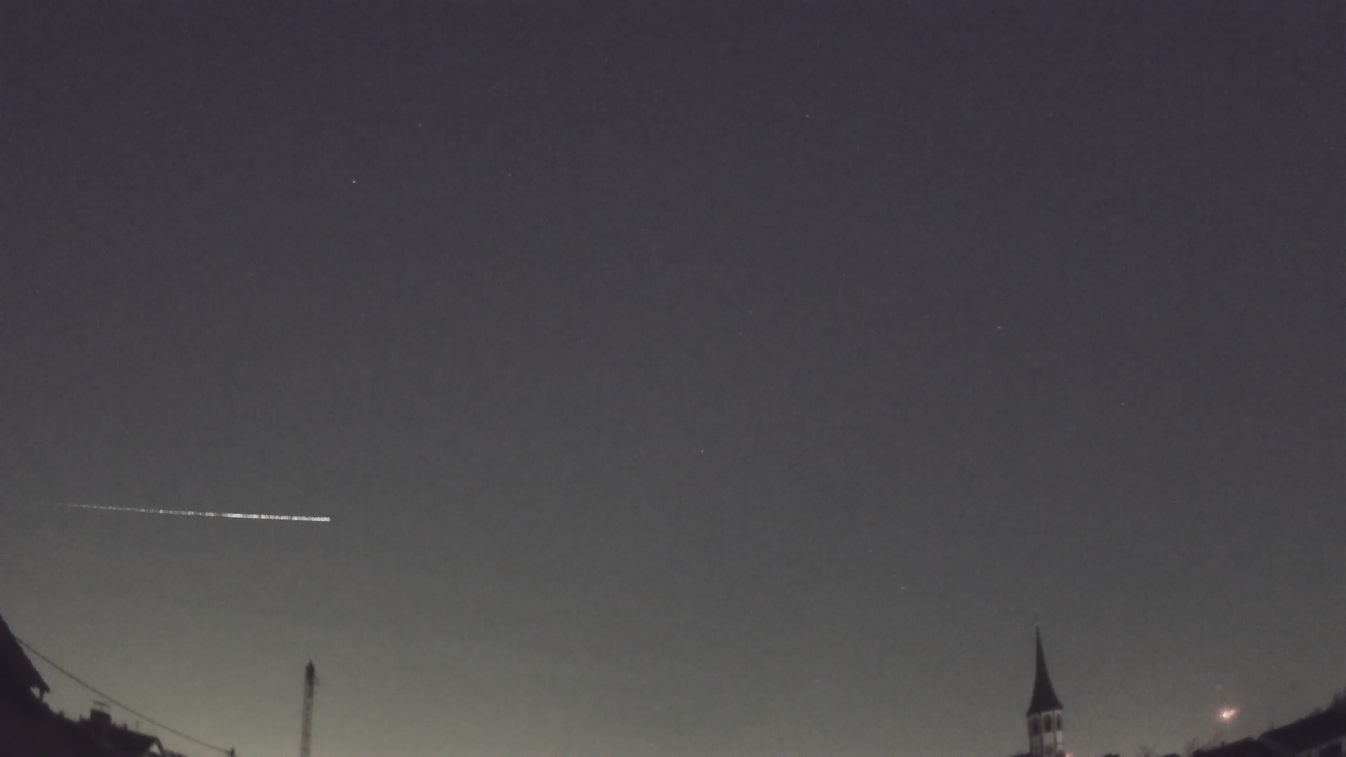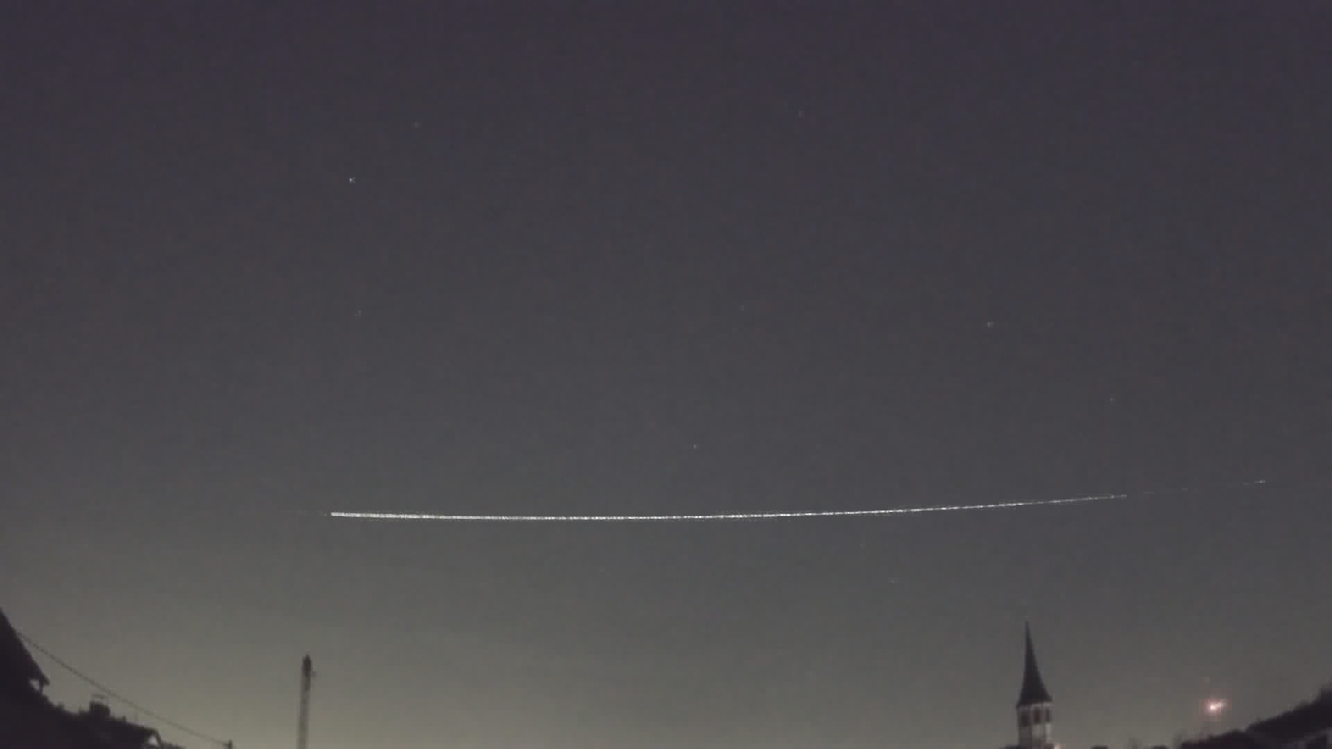 Wir hatten gestern in der Früh ein sehr langsamer Meteor aufgezeichnet, der in etwa 13 Sekunden praktisch von Horizont zu Horizont zog. Bisher hatten diesen 16 Stationen unseres Schweizer FMA Netzwerkes registriert und inzwischen ausgemessen. Unten ein Bild von meiner (wegen des hellen Mondlichtes sowie Streuung durch dichte Zirren stark bearbeitet). Die Flugbahn war dabei von Ost nach West. Im Tessin erschien der Meteor nördlich, so dass seine Bahn vermutlich quer durch die Schweiz führte. Selbst bei einer Station in Bologna, Italien, wurden noch ein starkes Radiosignal von 55 dB festgestellt. Wir sind aktuell am Berechnen der Bahndaten. Gibt es hierzu noch weitere Beobachtungen aus Süddeutschland, Österreich oder Frankreich?