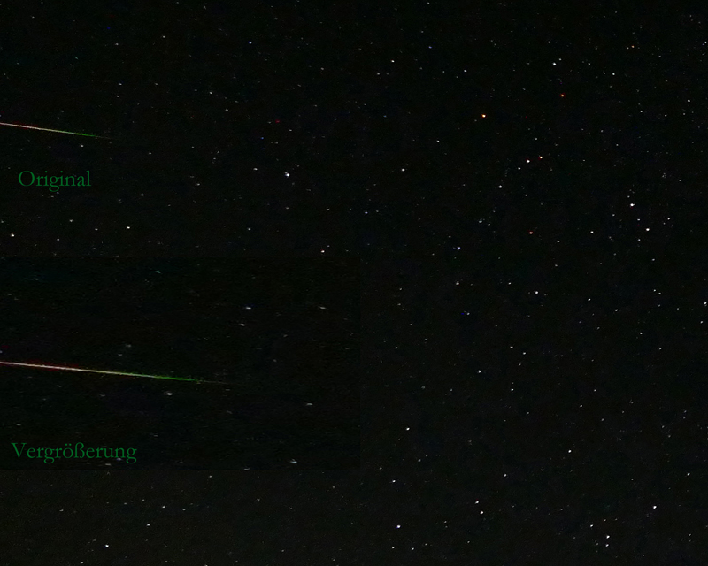 Ich habe auch einige mit grüner Leuchtspur gesehen, die einige Sekunden zu sehen waren (waren das Leuchtkugeln?). Leider ausserhalb der Kamerasicht.