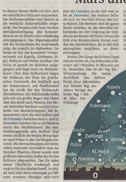Im Dezember sind die Uriniden aktiv! Wenn da was runterkommt, eher unappetitlich.