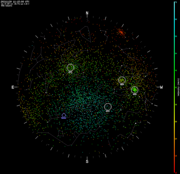 Abschließend hier noch die CMOR-Graphik von heute (für den 29.11.). Der Radiant ist recht weit gestreut, hebt sich aber noch vom HIntergrund ab: Christoph