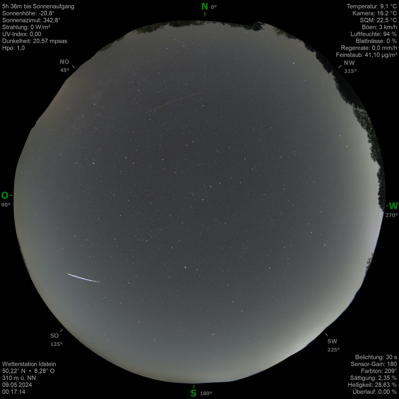 Eben beim digitialen Überwachen des nebengefährdeten Idsteiner Himmels (während das Teleskop C/2023 A3 aufzeichnet) erhascht: