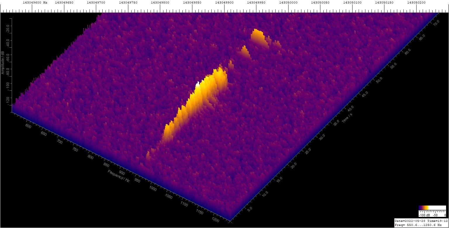 Ich habe gestern Abend (28. Mai 19:12 UTC) ein Echo eines Meteors eingefangen, der auch aus mehreren Stücken besteht.