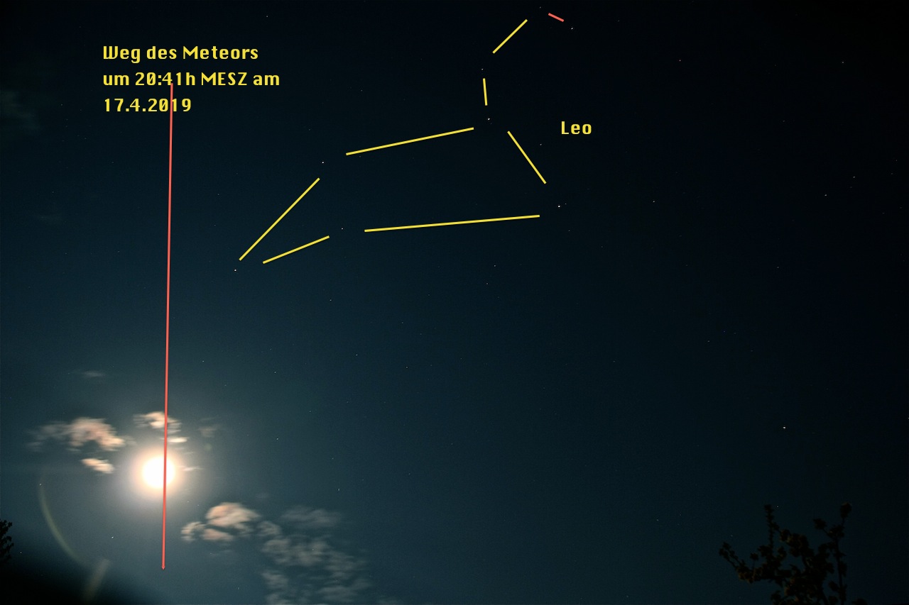 Meteor mit Schweif südl. v. Wien 17.4.19-20:41h