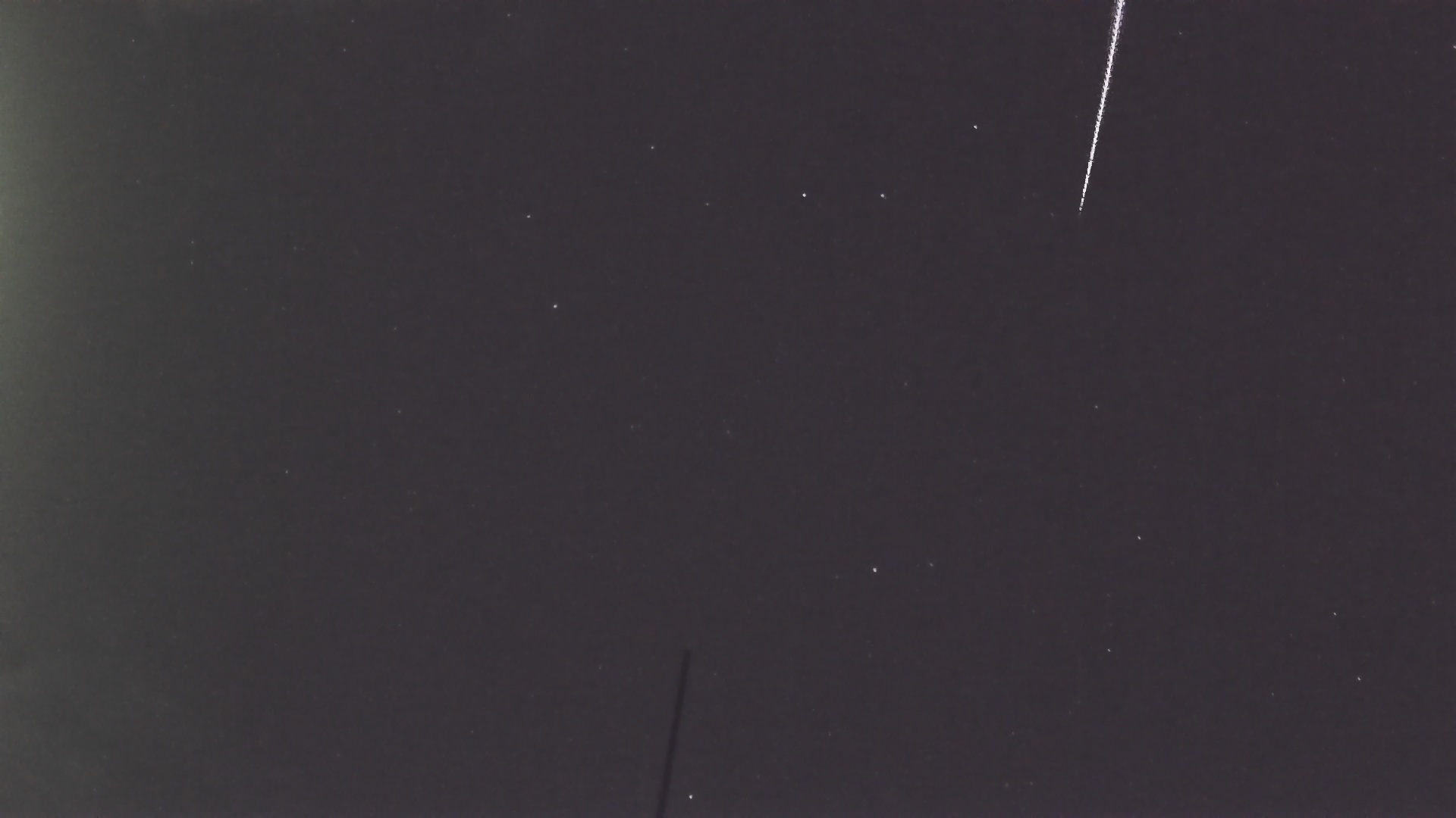 Vergangene Nacht leuchtete ein helles Meteor, das sich zum Ende hin zerteilte, ziemlich genau über der brandneuen AllSky7-Kamera in Radebeul auf. Die beiden Zenitkameras konnten Anfang und Ende registrieren: