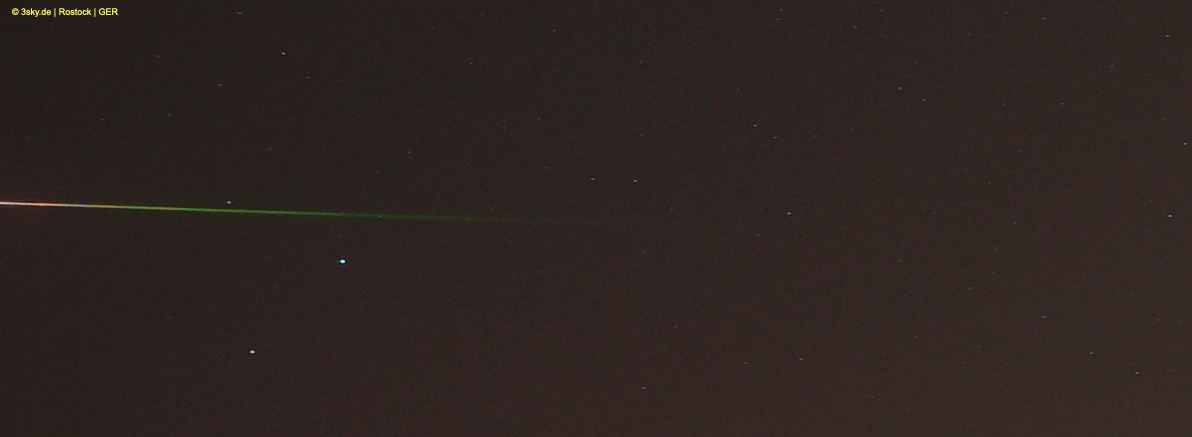 Den hellen Nichtaurigiden um 23:26 MESZ habe ich nur beim Wegdrehen als Aufblitzen am Gesichtsfeldrand wahrgenommen.