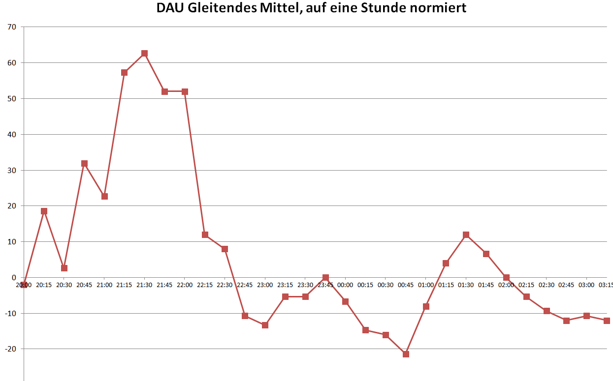 Hier nun die Daten für den Zeitraum des Ausbruchs. Dargestellt sind die Daten in Viertelstunden-Intervallen, jeweils die Äquivalent -Radio-ZHR.