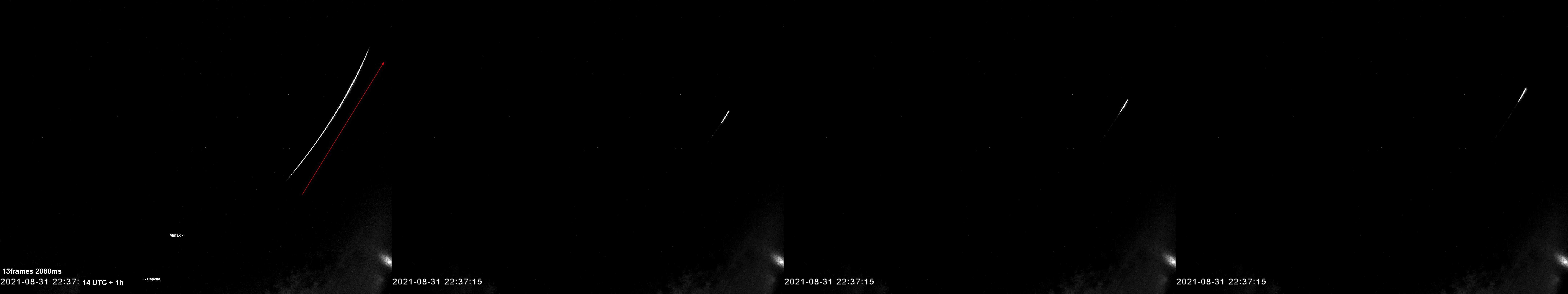 in den Frames 7,8,9 ist möglicherweise eine Rauchfahne? Nachleuchten? Fragmentierung? zu erkennen