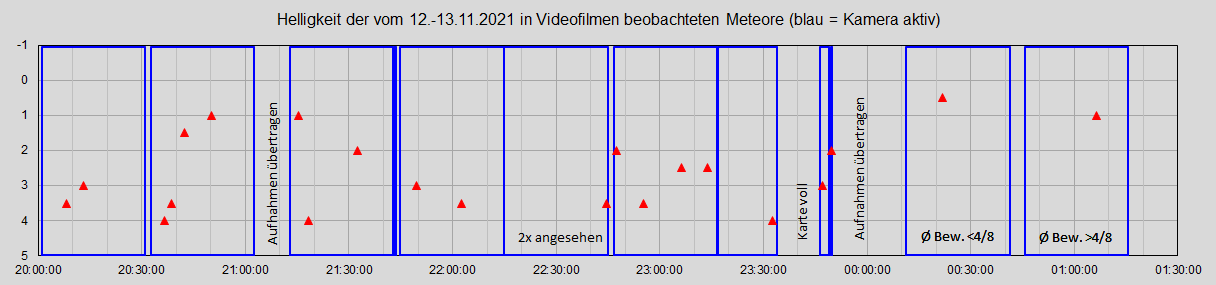 Ohne die beiden letzten sehr von Wolken und Dunst beeinflussten Filme waren es 19 Meteore in 200 min.