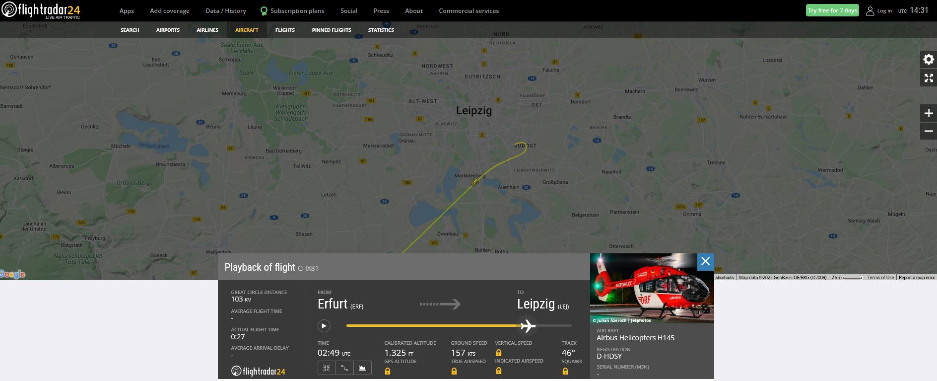 Danke, das hilft weiter. Und wie ich es mir gedacht habe - das war etwas irdisches - nämlich der Notarzt im D-HDSY Helikopter auf dem Weg ins Herzzentrum Leipzig...