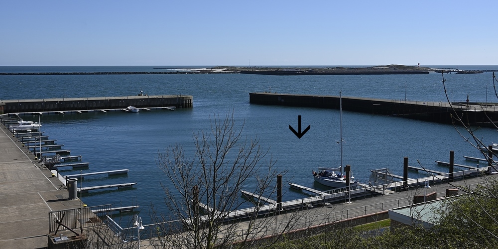 Er ist direkt vor seinen Augen in den noch leeren Hafen gefallen (der Segler war nicht da).
