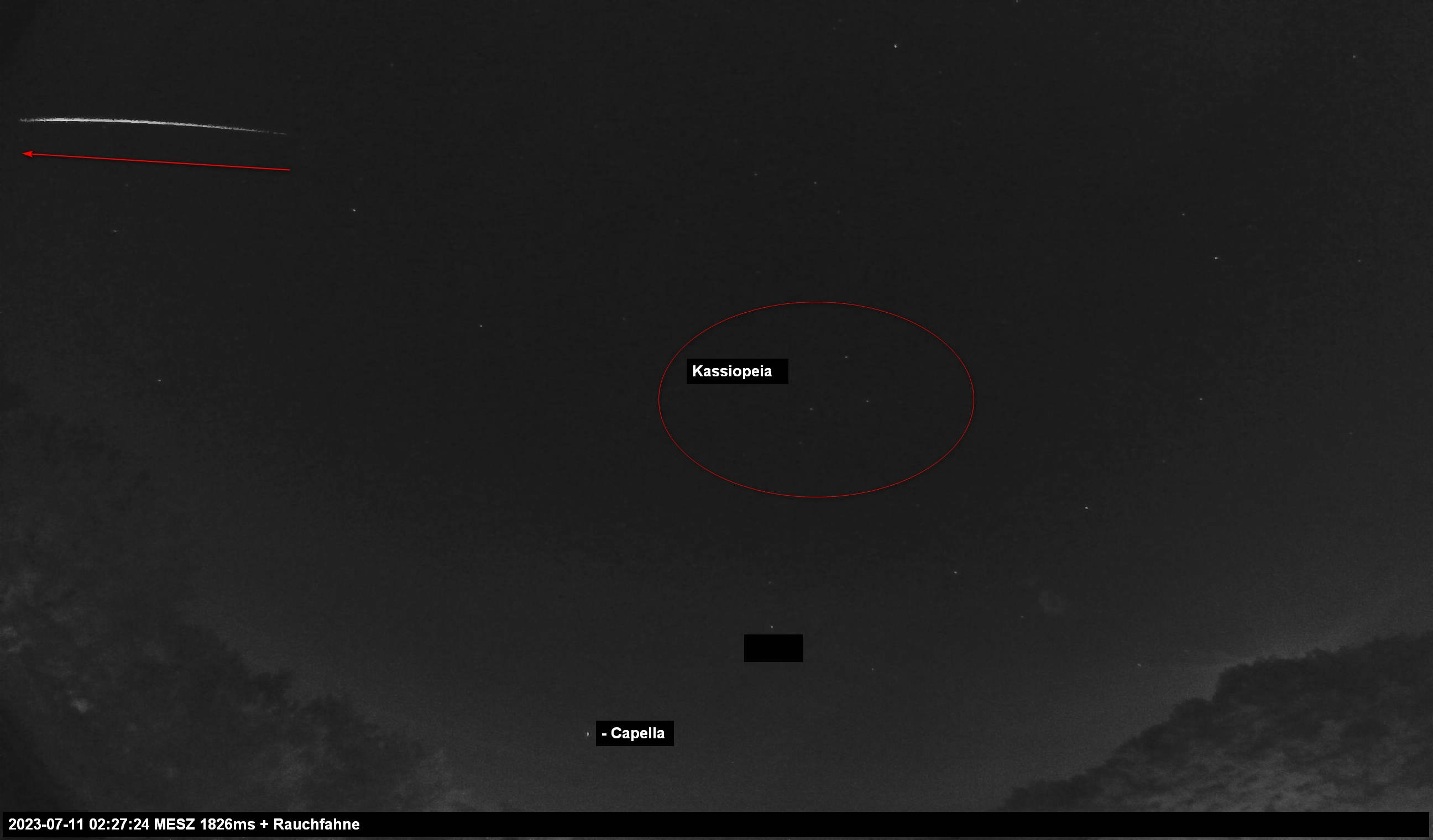 hab nachgeschaut, meine Allsky-Kamera hier in Idstein (50,22° N / 8,28° O) hat es auch aufgezeichnet, zwischen Kassiopeia und Großer Wagen zu sehen: