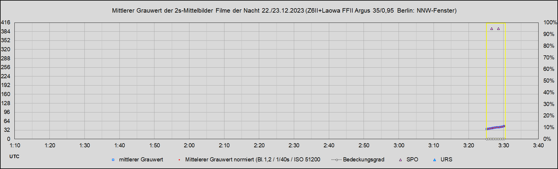 Hier mal die Himmelshelligkeit als mittlerer Grauwert des Aufnahmefeldes und sein Bedeckungsgrad mit Wolken