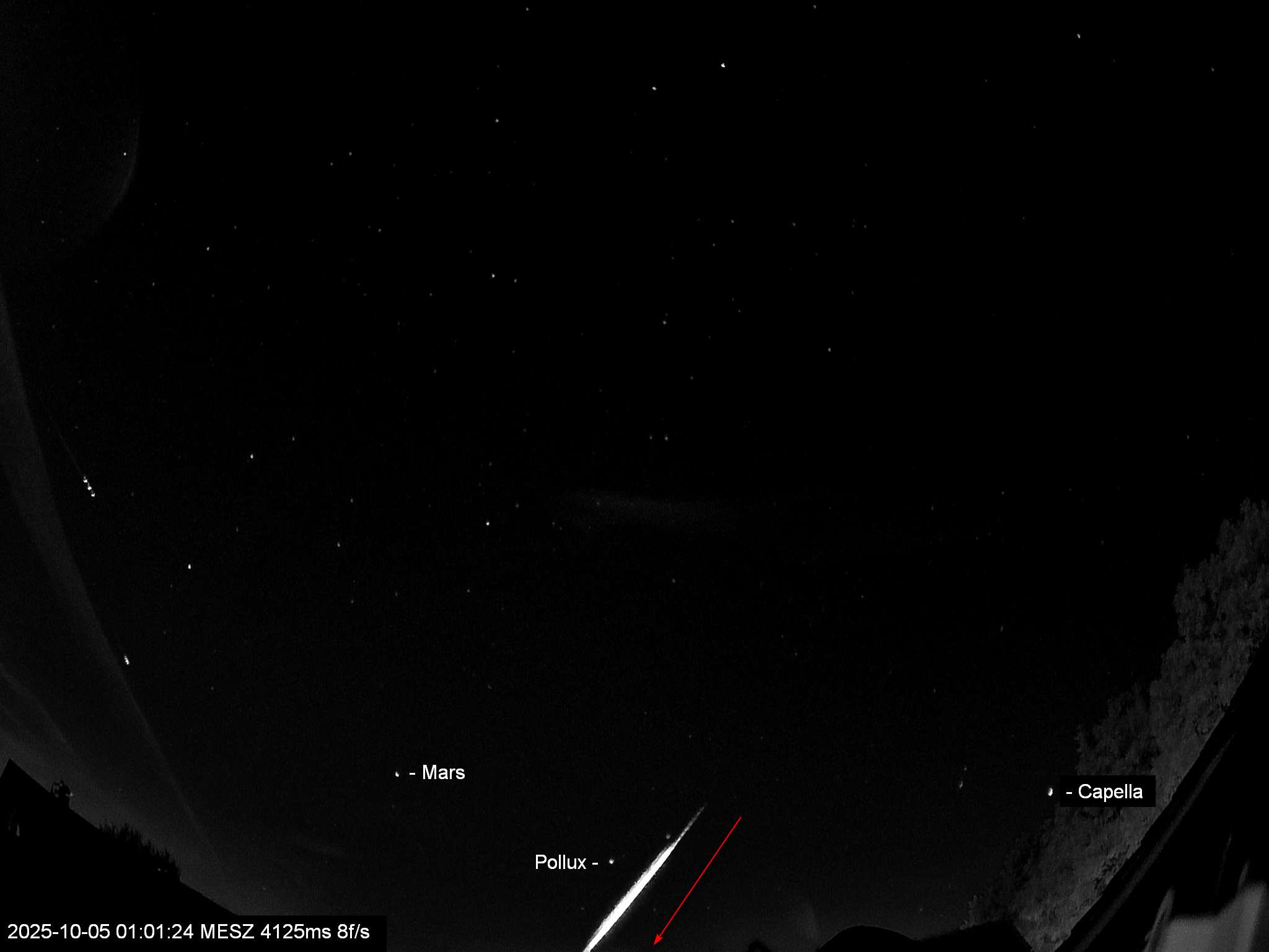 Uhrzeit der Kamera war 01:01:32 MESZ und die Aufnahmedaten: 16 mm, F2,8, ISO 4000, 5 sec.