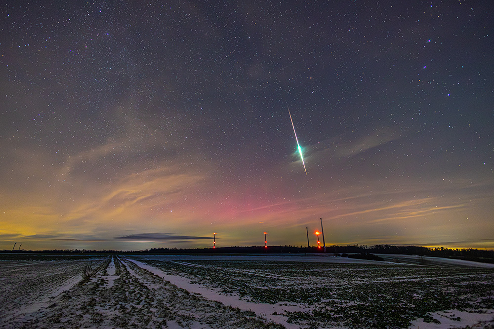 hier die Feuerkugel von Kirchhain aus, zusammen mit etwas Polarlicht: