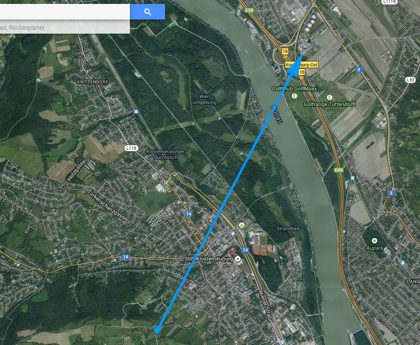 Beobachtungspunkt ist Klosterneuburg, gleich nordwestlich von Wien, Start der Beobachtung in etwa 03:00, Ende cca. 03:45 (! Beobachtungszeit, Display war mutmaßlich sowohl zuvor, als auch danach noch sichtbar)