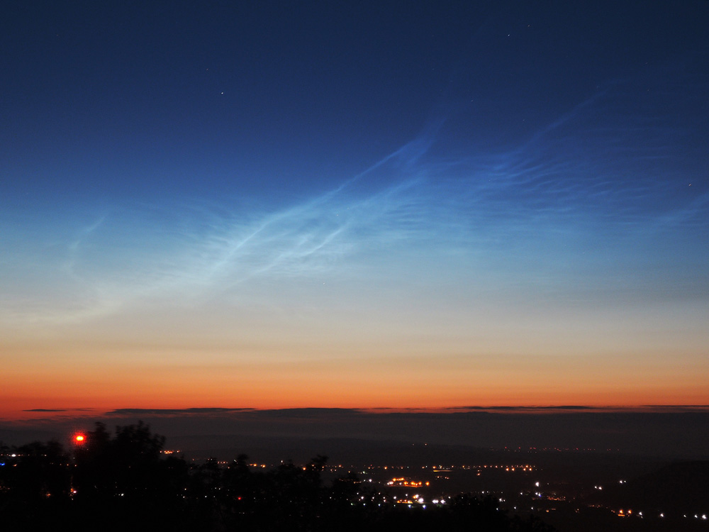 das passt perfekt zu den Beobachtungen weiter östlich und nördlich (Berlin, Dresden, Kiel) und zu einer Lage des Feldes über dem westlichen Polen. Das andere, im Odenwald dokumentierte NLC-Feld konntest Du nicht sehen, weil es südlich von Dir stand.