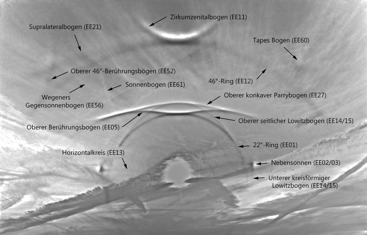 Nur wenige Minuten später hat sich der Zirkumzenitalbogen und im Ansatz der Supralateralbogen gezeigt.