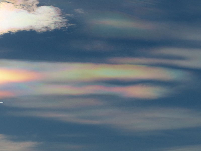 Wie schon im vorigen heutigen Beitrag: Das Irisieren an der "Kante" der aufziehenden Warmfront war heute beachtlich und fiel sogar im "Augenwinkel" auf. Die ersten drei Bilder sind nicht korrigiert! Das vierte hat den Farbkontrast lediglich um 40% angehoben.