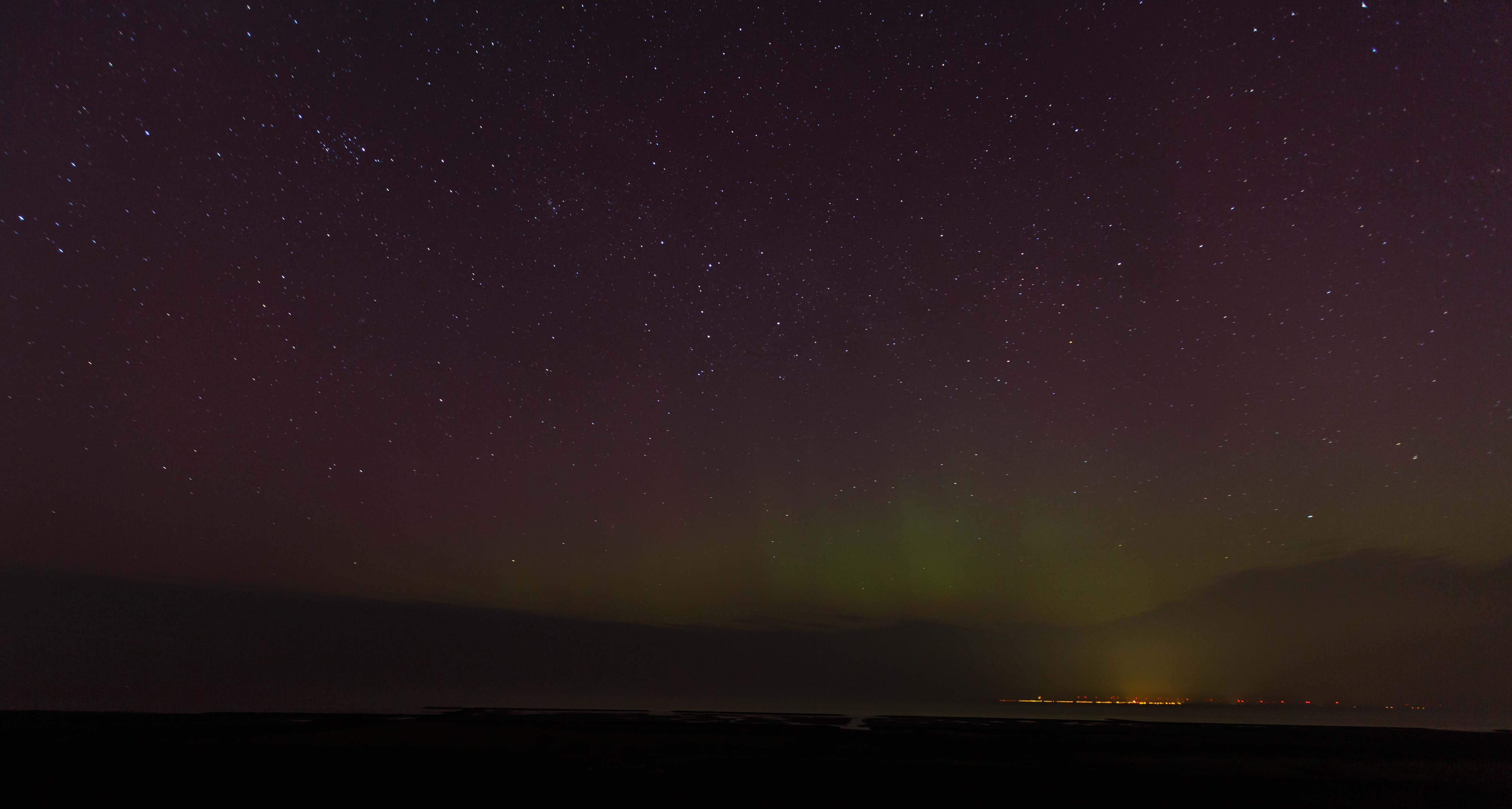 auch hier bei Würzburg fotografisches Polarlicht. Sterne wegen Dunst erst ab 30 Grad sichtbar, deshalb keine Chance auf visuelle Beobachtung.