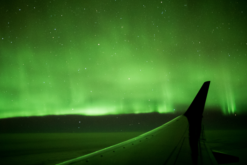 http://flux.phys.uit.no/cgi-bin/mkstack ... nor=&Sync=& . Der erste begann, als wir gerade die Shetlands erreicht haben. Darauf hin habe ich den Piloten gebeten, früher als geplant eine Schleife zu fliegen, damit jeder erst einmal PL zu sehen bekommt. Als der Substorm abflaute sind wir weiter Richtung Island geflogen. Aktivität war die ganze Zeit über sichtbar. In der Nähe von Island haben wir dann wie vorher geplant unsere Schleifen geflogen und schließlich den zweiten Substorm mitgenommen. Den Rückflug haben wir dann etwas weiter nördlich und mit östlicherem Kurs geflogen, sodass wir bis kurz vor Bergen auf der linken Seite noch PL sehen konnten. Insgesamt hatten wir so 3 Stunden PL-Beobachtung, 1 Stunde länger als im formalen Plan vorgesehen. Es war aber von vorneherein klar, dass wir flexibel reagieren würden. Sowohl die Crew als auch die Luftkontrolle in Reykjavík haben toll mitgezogen.