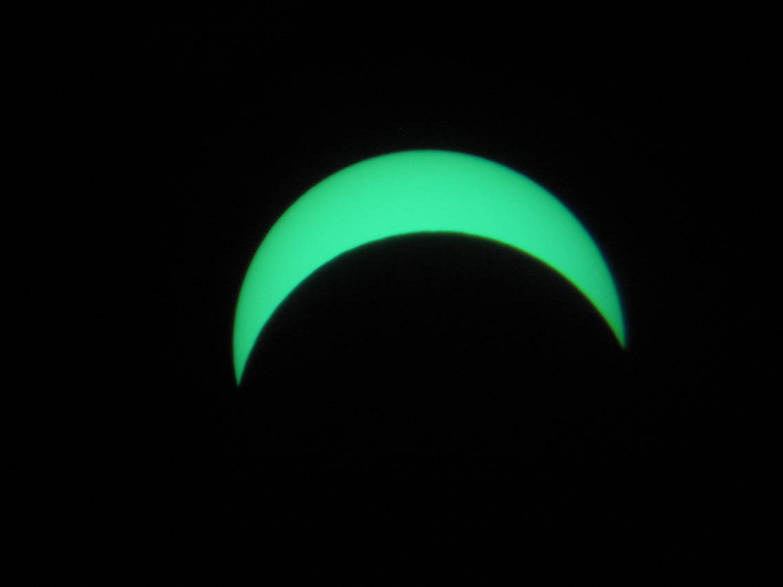 Aber im Satellitenbild ist der Schattenwurf des Mondes schön zu sehen: