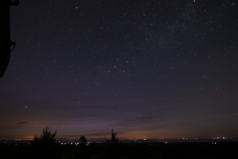 Da es schon wieder hell wird, ist die PL Jagd nun "schon" beendet, obwohl die Werte immer besser werden. Visuell war nur eine schwache Aufhellung zu sehen, die ohne den fotografischen Nachweis aber nicht als PL zu erkennen gewesen wäre. Auf den Bildern sind auch einige Strahlen zu sehen, die von West nach Ost wanderten, der deutlichste und recht hochreichende (die blaue Aufhhellung über dem roten Teil gehört noch dazu) anbei.