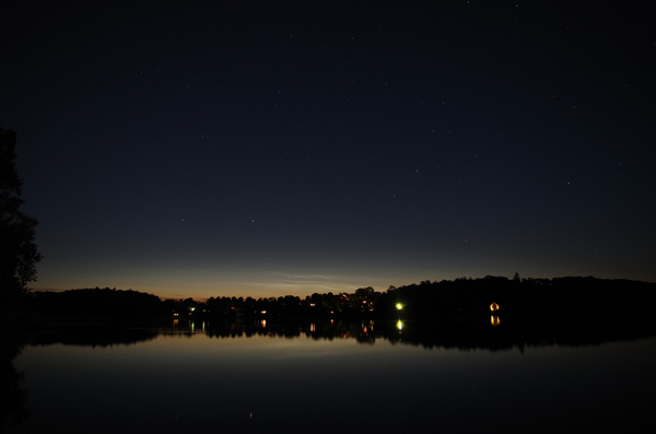 auch ich habe die NLCs in dieser Nacht beobachten können, bin eigentlich recht spät dazu gekommen Bilder zu machen ( aufgefallen sind sie einem schon gegen halb 2/2 am ohnehin ja leicht aufgehellten Nordhimmel durch die Mitternachtsdämmerung).